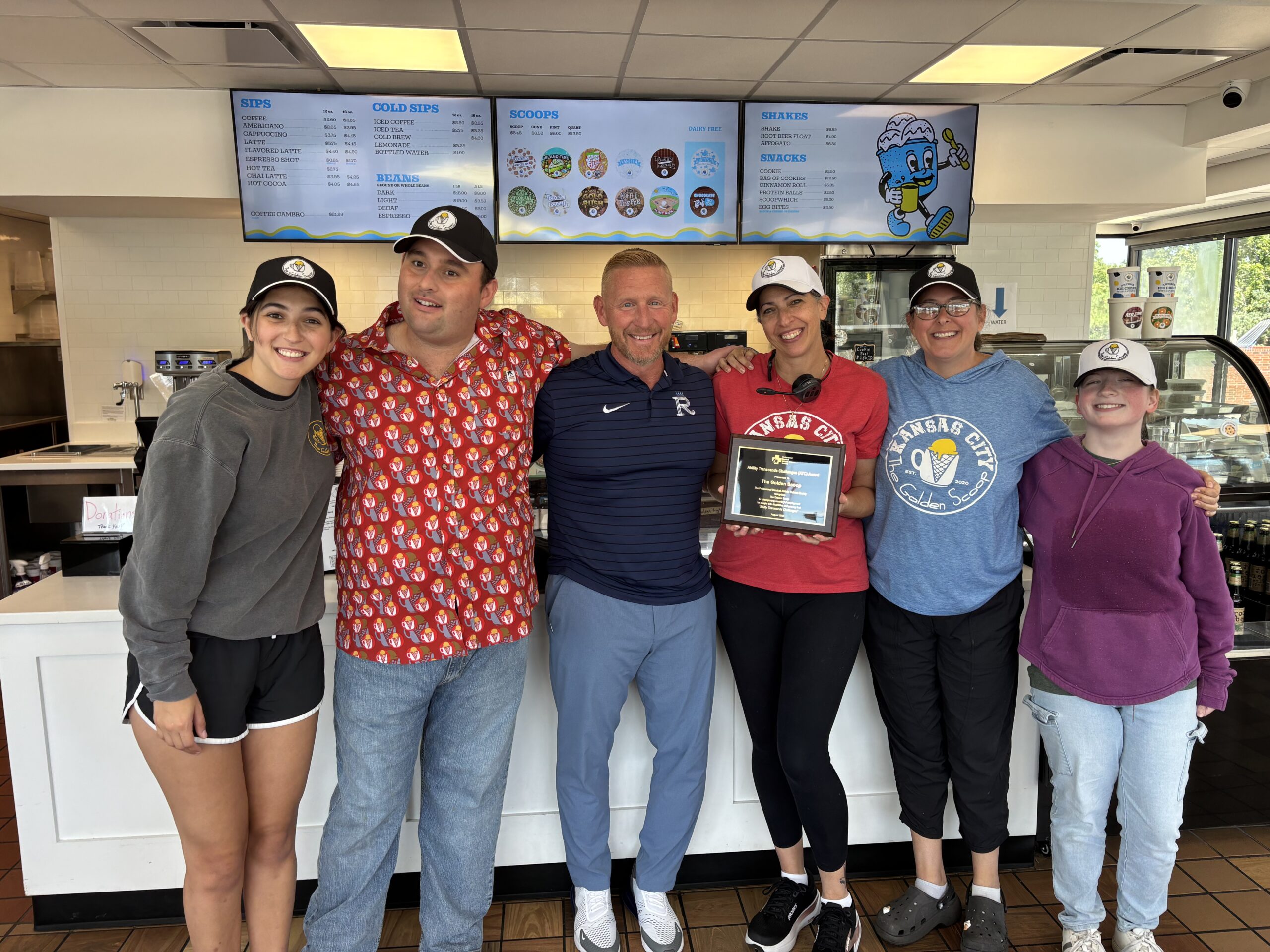 Pictured above: Nick Kenney, PBATS President and member of the Kansas City Royals athletic training staff presents the ATC award to The Golden Scoop in Kansas City.